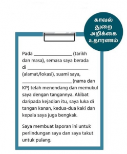 2. காவல்துறை அறிக்கையில், தான் எப்படிக் கொடுமைப்படுத்தப்பட்டோம் என்பதனைப் பாதிக்கப்பட்டவர் விரிவாகவும் தெளிவாகவும் எழுத வேண்டும்.