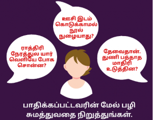 உண்மை நிலை: பலவீனமான சூழல் மற்றும் இருக்கும் இடத்தைப் பொருத்தே ஒரு காமுகன் கற்பழிக்கிறான். இங்கு அவன் அவர்களுடைய தோற்றம் மற்றும் நடத்தையைக் கருத்தில் கொள்வதே இல்லை. கற்பழிப்புக் குற்றம் சுமத்தப்பட வேண்டியவர் கற்பழித்தவர் மட்டுமே. சிறார், வயதில் முதிர்ந்த, அடக்கமான உடையணிந்த, முக்காடு போட்ட பெண்களும் கற்பழிக்கப்படுகிறார்கள். ஒரு பெண் எப்படி உடையணிகிறார் அல்லது எப்படி நடந்துகொள்கிறார் என்பதற்கும் கற்பழிப்புக்கும் சம்பந்தமில்லை. இவை யாவும் பெண் மீது பழி போடுவதற்காக கற்பழித்தவன் சொல்லும் சாக்குப்போக்குகள்.